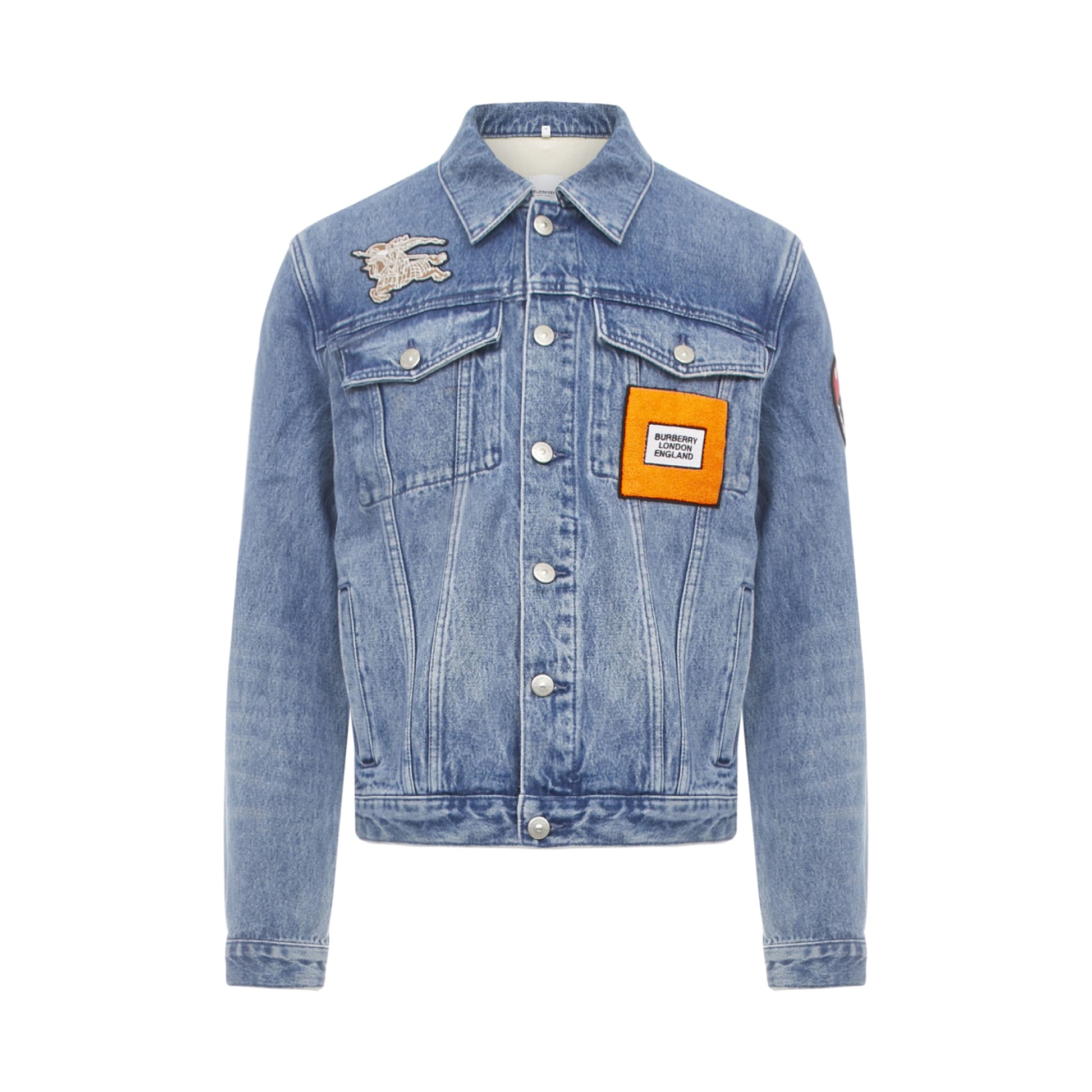 Burberry Logo Appliqués Denim Jacket In Light Indigo