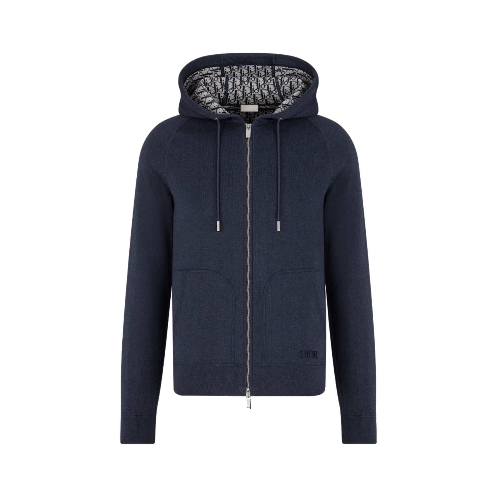 Dior Hooded Cashmere Knit Track Jacket Navy Blue