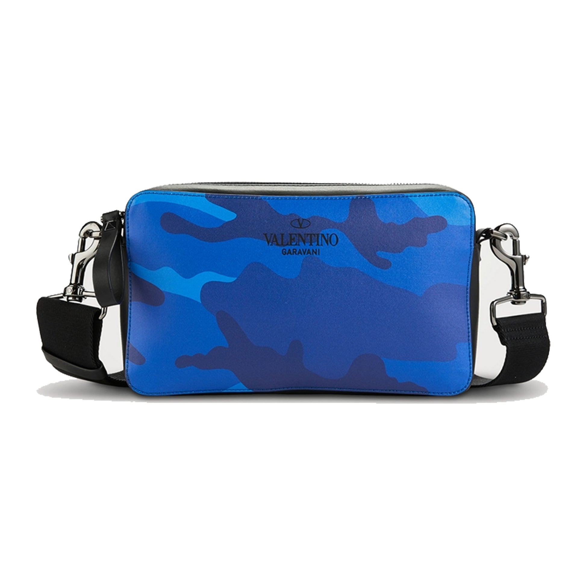 Crafted in leather with all-over camouflage print, this crossbody bag features a removable and adjustable shoulder strap, and zip top fastening. Finished with a leather zipper pull and VALENTINO logo printed at the front.